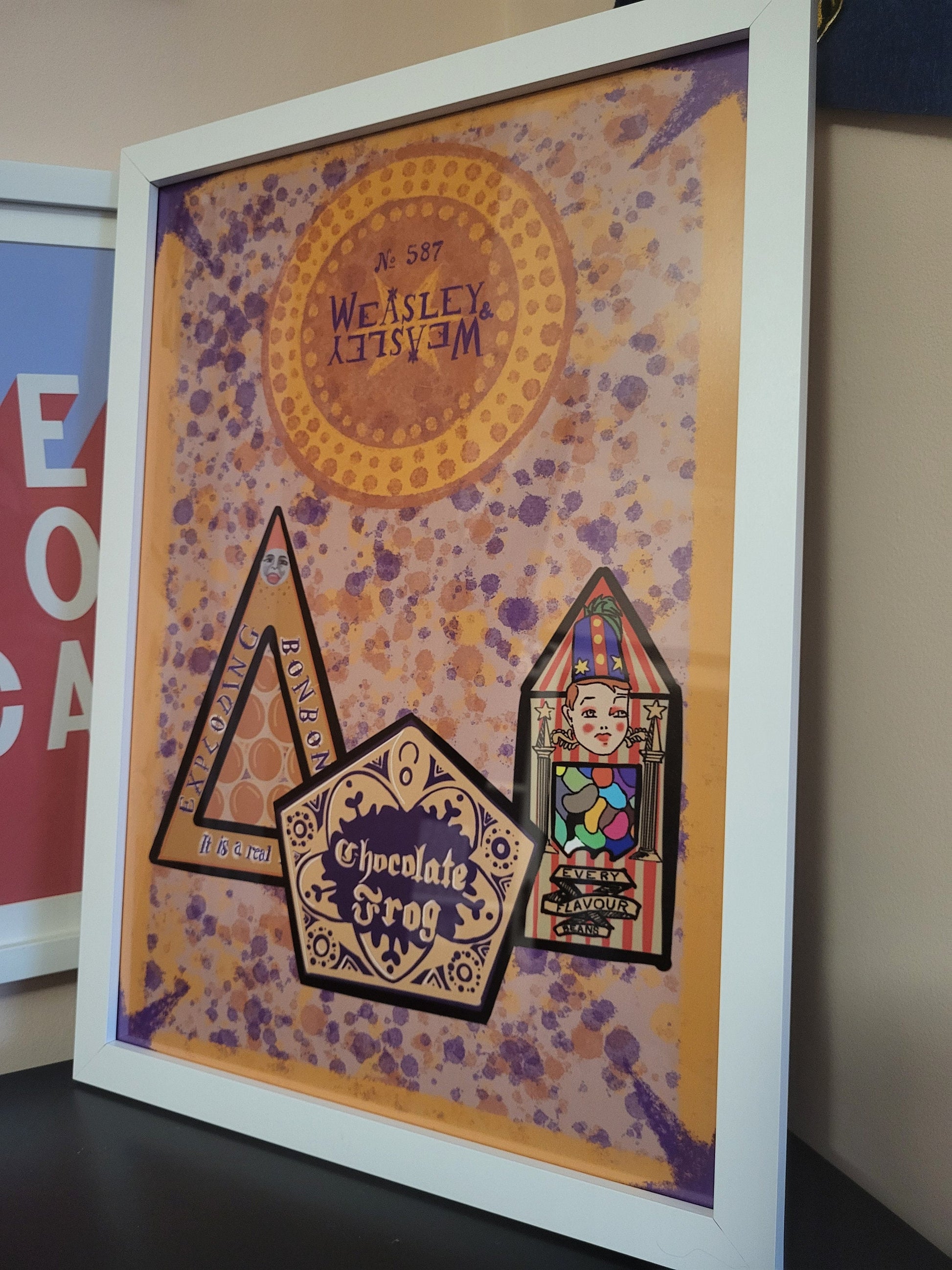 Harry Potter Sweets Print - Weasley and Weasley - Chocolate Frog, Bertie Bott’s Beans, Exploading Bon Bon’s - available in different sizes
