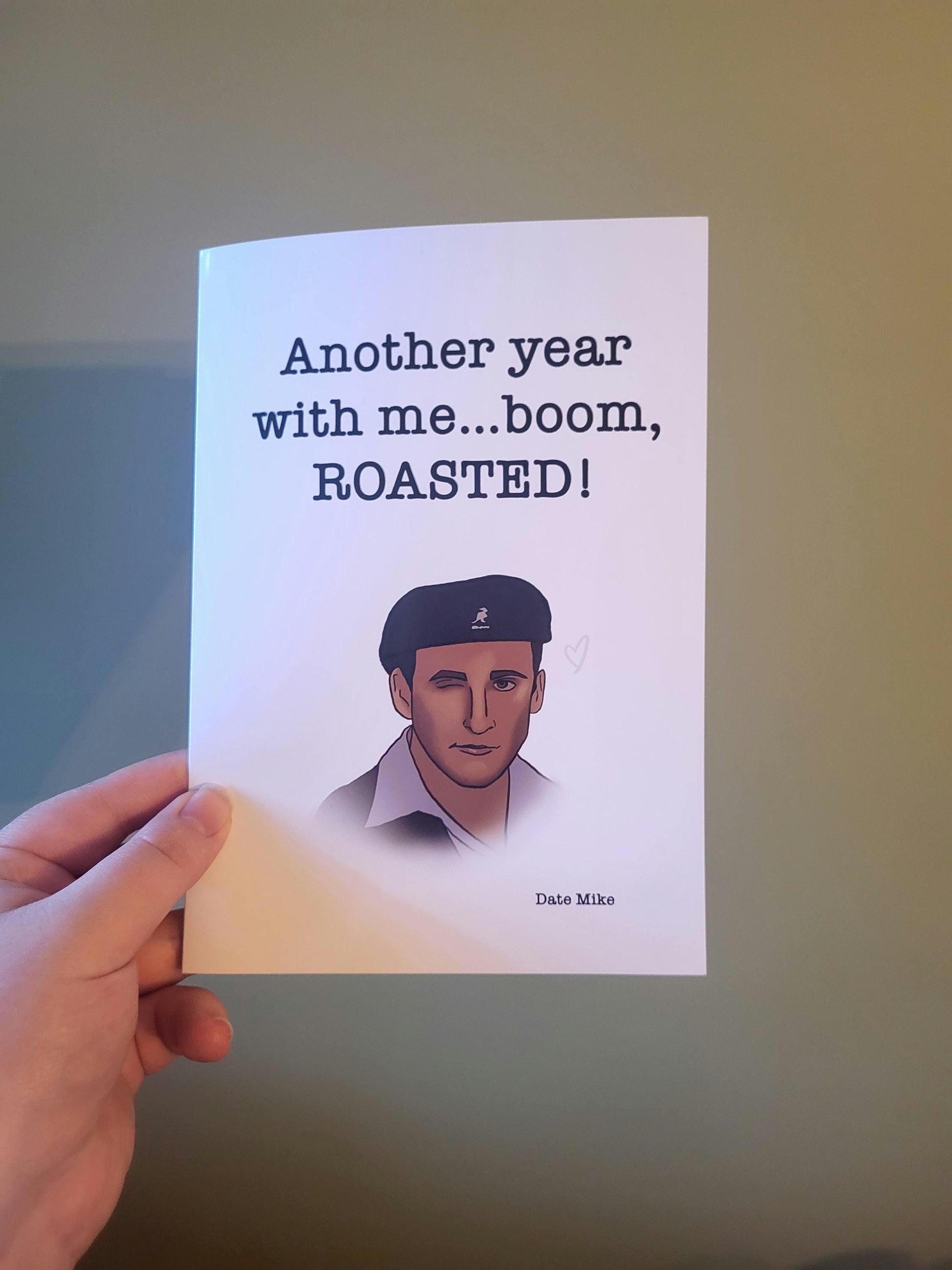 The inside of the card can be kept blank if wanted for you to write on. writing can be added to the inside of the card if requested Card can be created on a variation of different Card Types - Matt Card (300gsm), Hammered Card (300gsm) or Gloss Card (See in images and has best resolution) Each card comes with a handmade envelope!