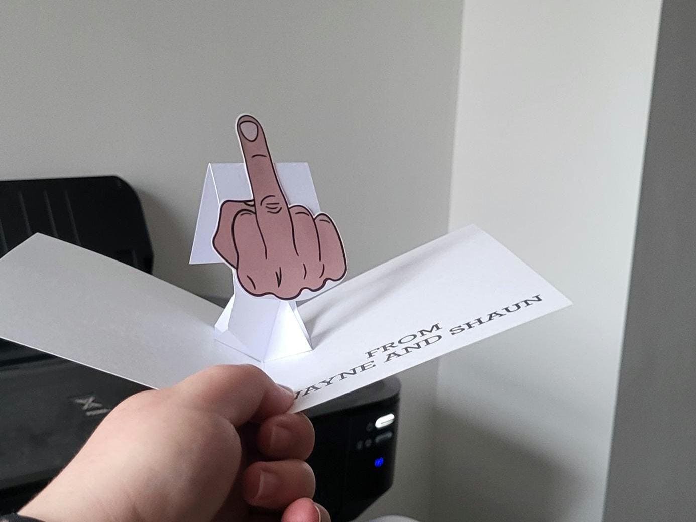 Middle Finger Pop-Up Card, printed of 300gsm card. 100% personalisable, please ensure you fill out the requested customisation box.