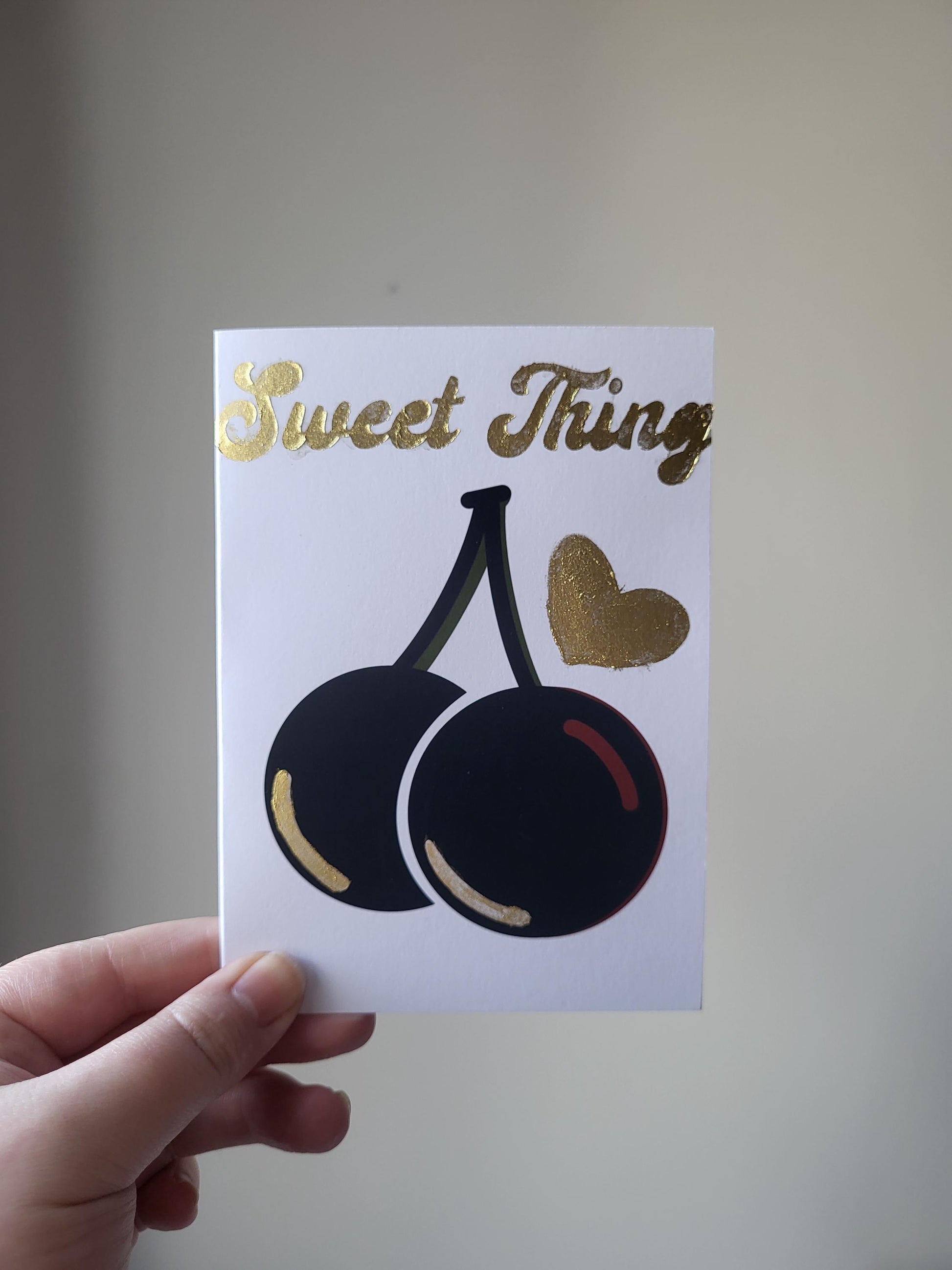 Small 'Sweet Thing' greeting cards with gold embellishments