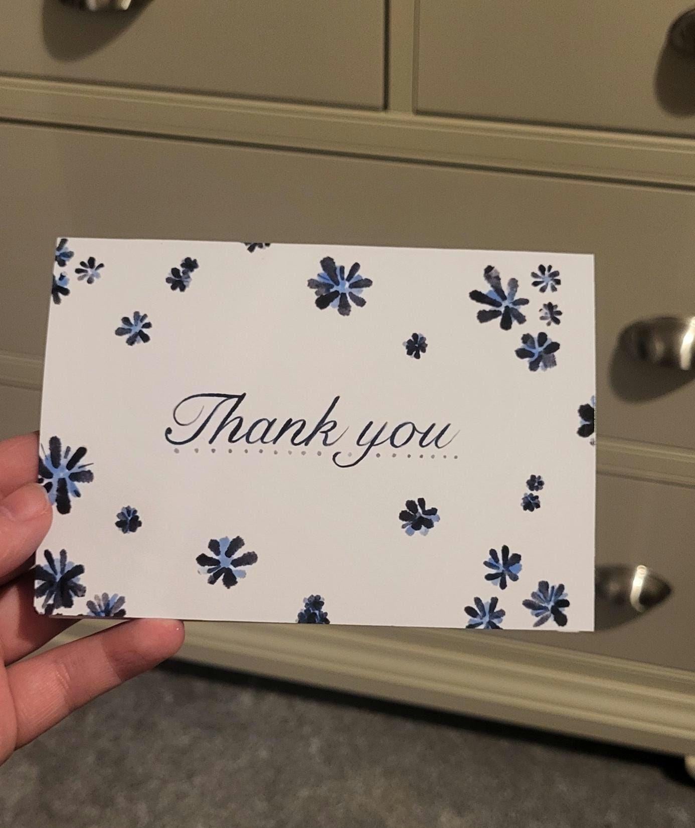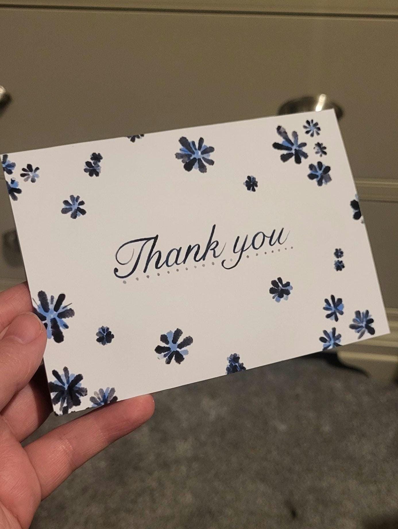 Thank you A6 Cards - Blue and Black Floral - Packs of 10