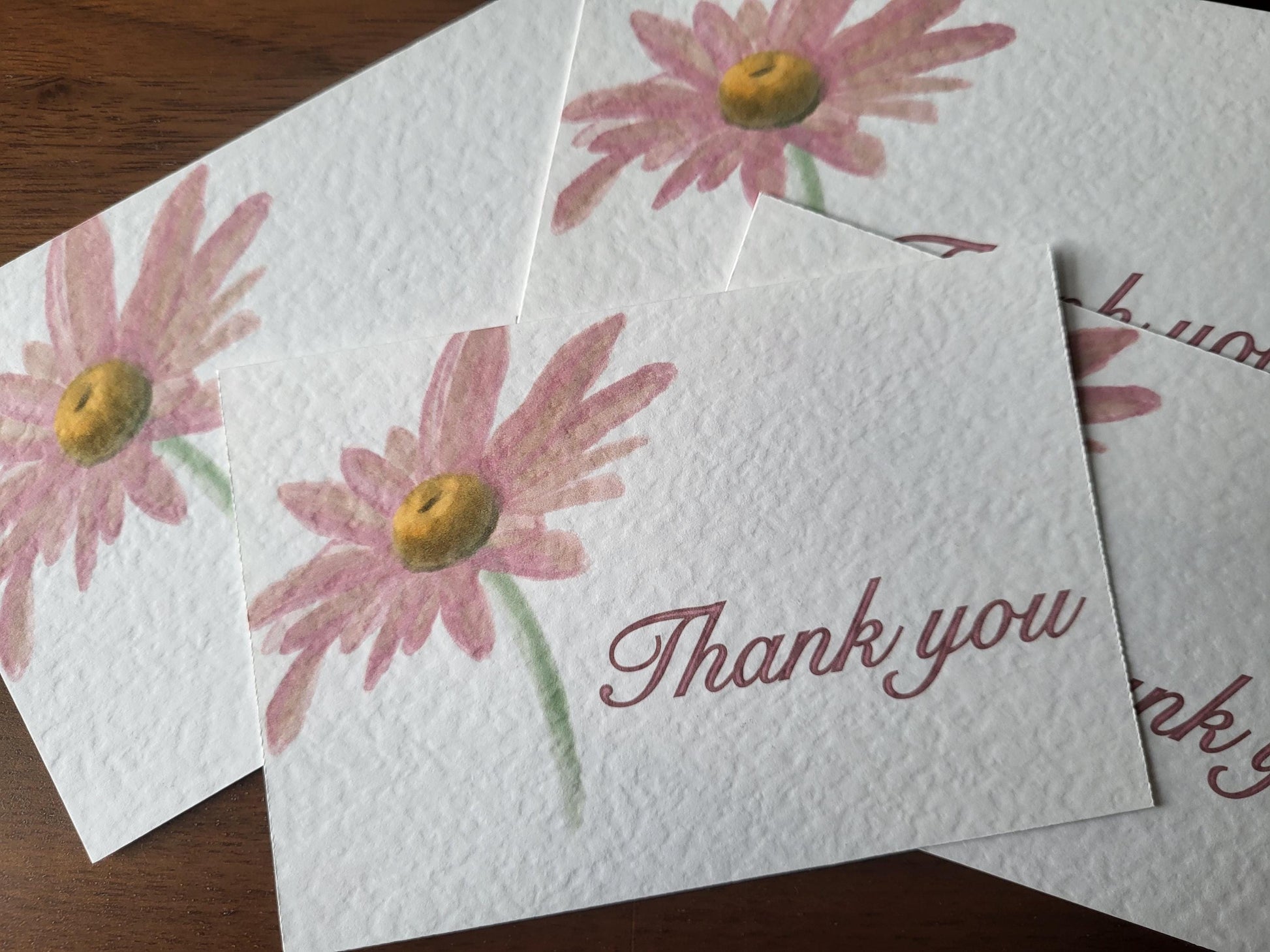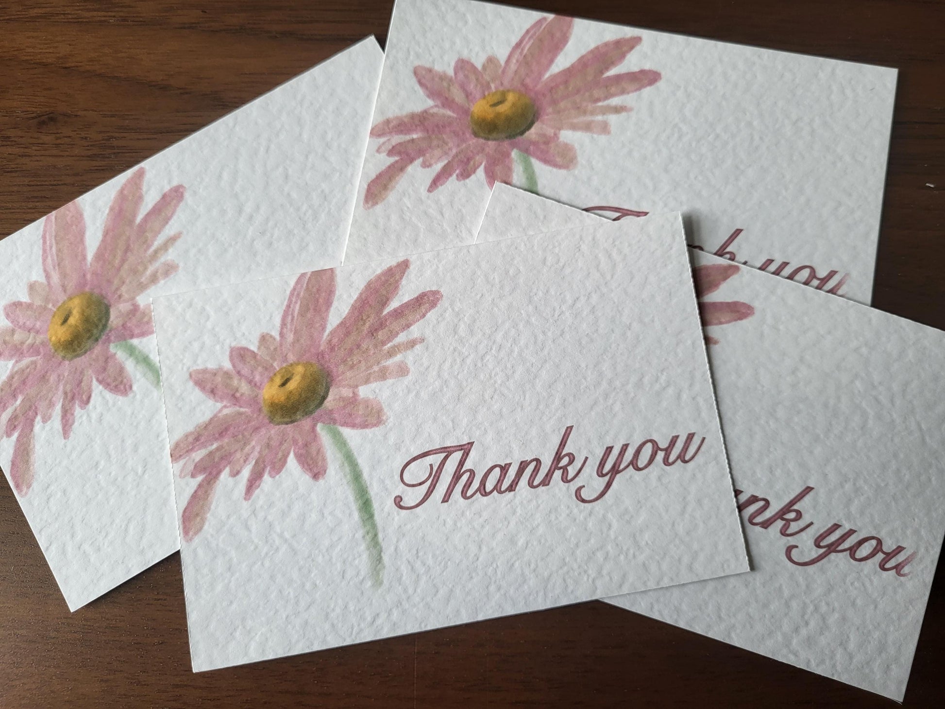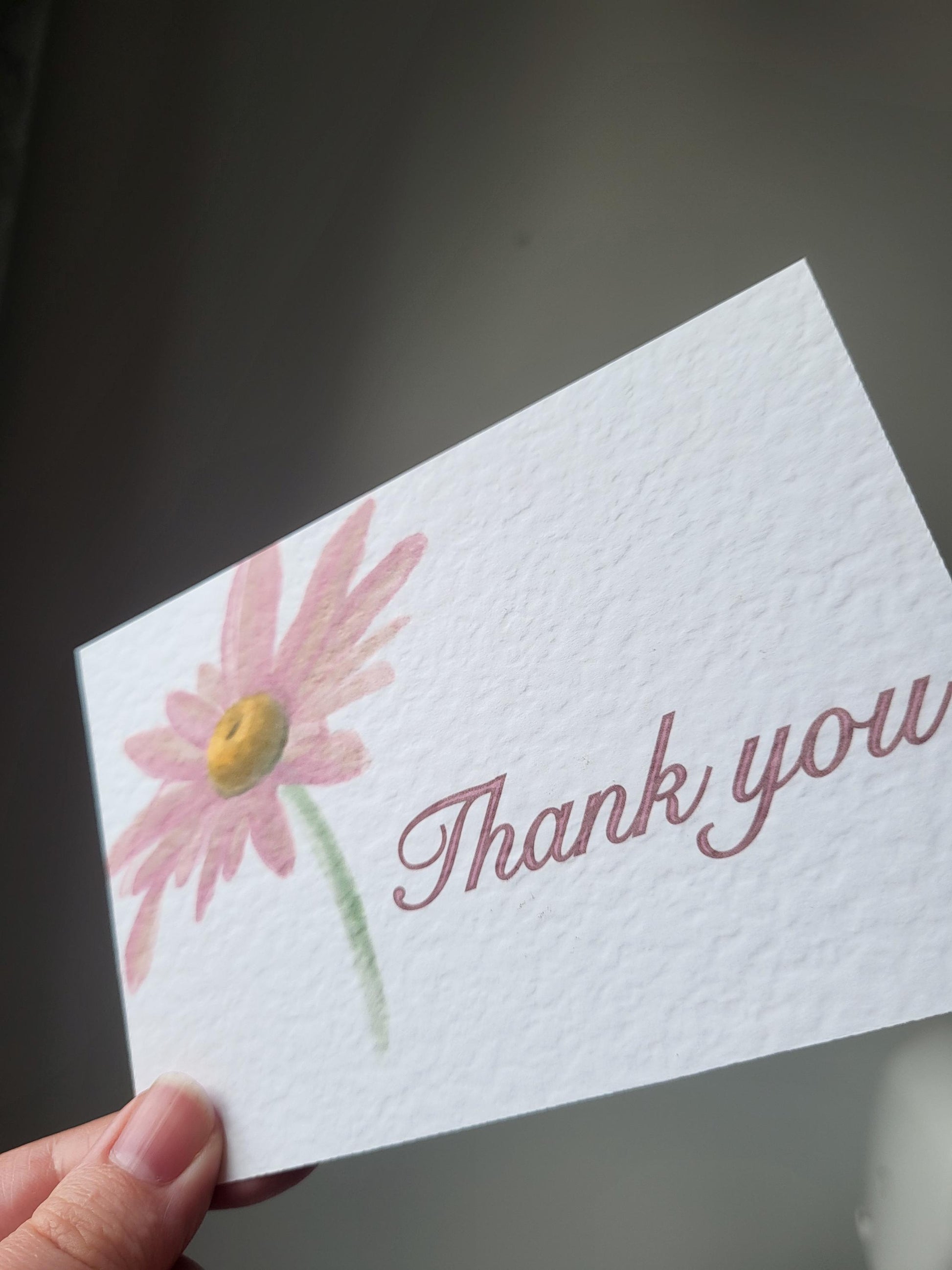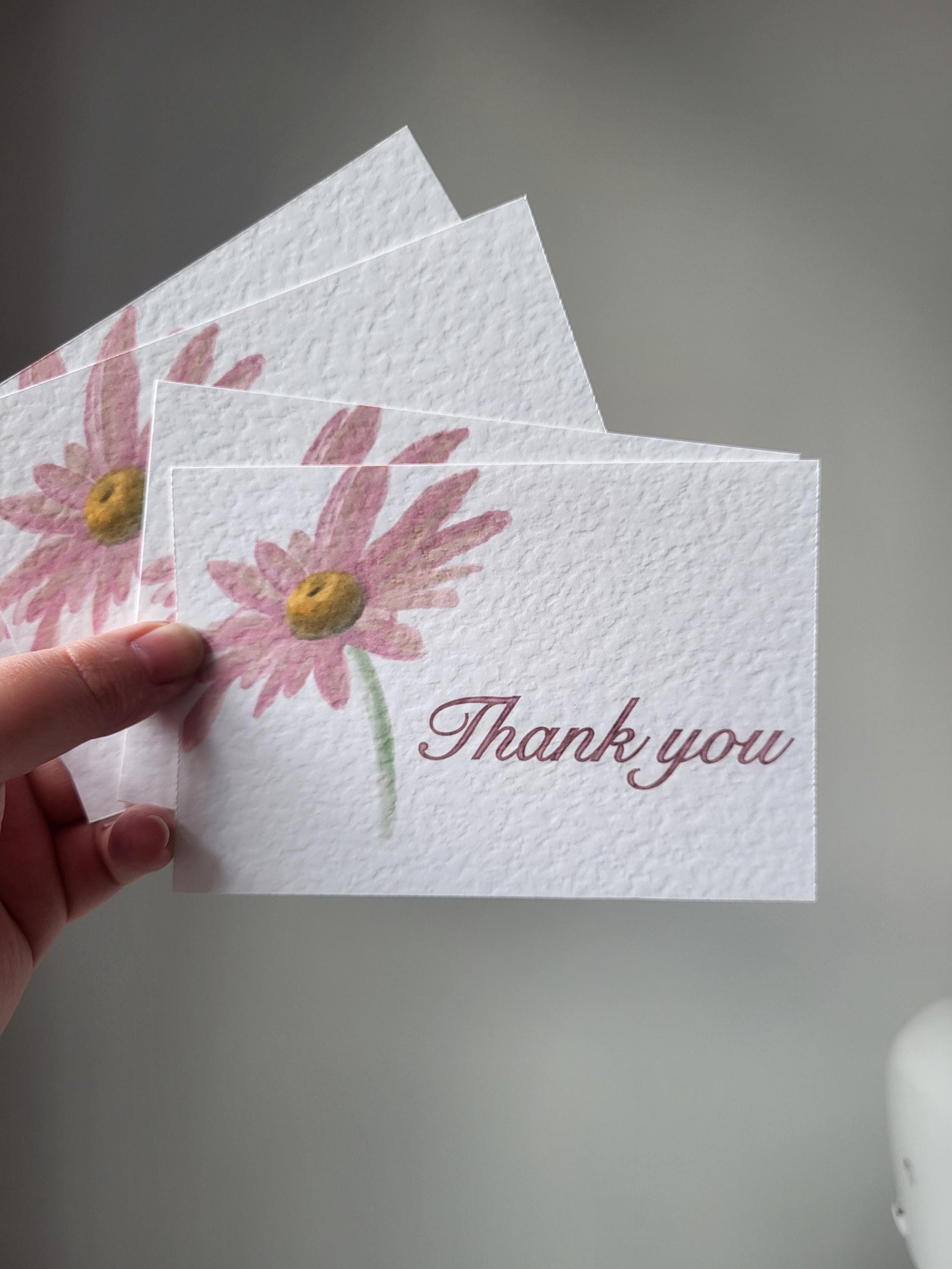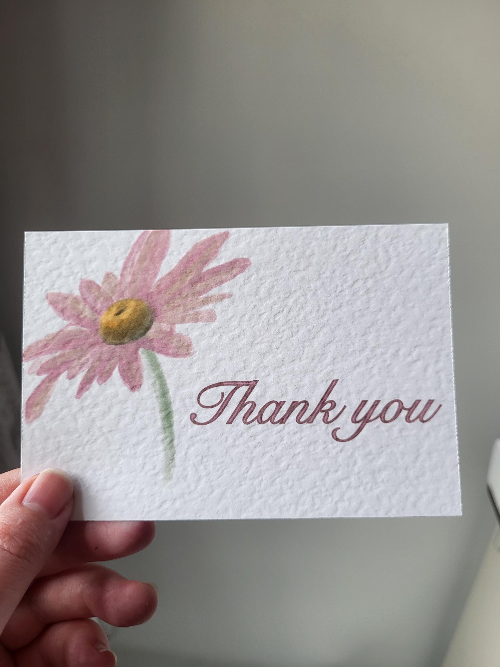 Thank You Cards - approx 4"x6" pack of 10 - hammered thank you card with flower detail